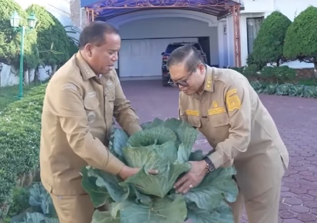 Kabanjahe – Bupati Karo, Brigjen Pol (Purn) Dr. dr. Antonius Ginting, Sp.OG, M.Kes., dan Wakil Bupati Karo, Komando Tarigan, SP., panen Kol di Halaman Rumah Dinas Wakil Bupati Karo pada Senin (3/11/2025).