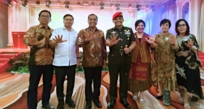 Karo – Bupati Karo, Brigjen Pol (Purn) Dr.dr. Antonius Ginting, Sp.OG., M.Kes, bersama Wakil Bupati Karo, Komando Tarigan, SP menghadiri acara syukuran kenaikan pangkat Dangrup 5 Kopassus Brigjen TNI Josep DD Surbakti, SE, M.Han, Sabtu (23/08/2025) di Regale International Convention Center Royal Hall Lt 2, JL. H. Adam Malik, Silalas, Medan, Sumatera Utara.