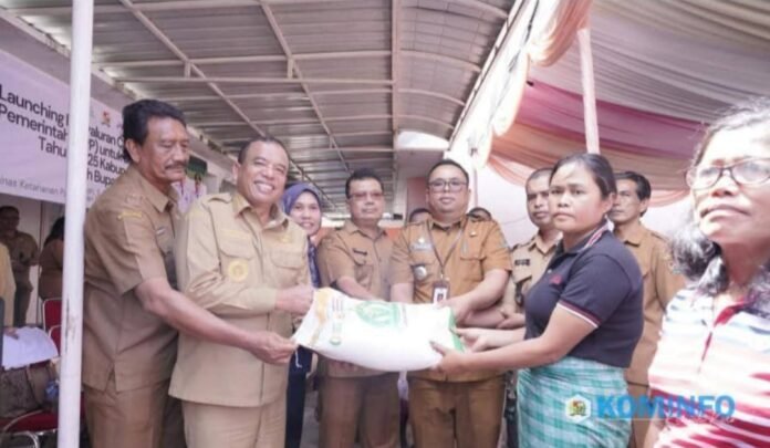 Karo – Bupati Karo, Brigjen Pol (Purn) Dr.dr. Antonius Ginting, Sp.OG, M.Kes, secara simbolis menyerahkan Cadangan Pangan Pemerintah (CPP) untuk Bantuan Pangan Tahun 2025 kepada masyarakat Karo di Halaman Kantor Camat Tiga Panah, Selasa (5/8/2025.