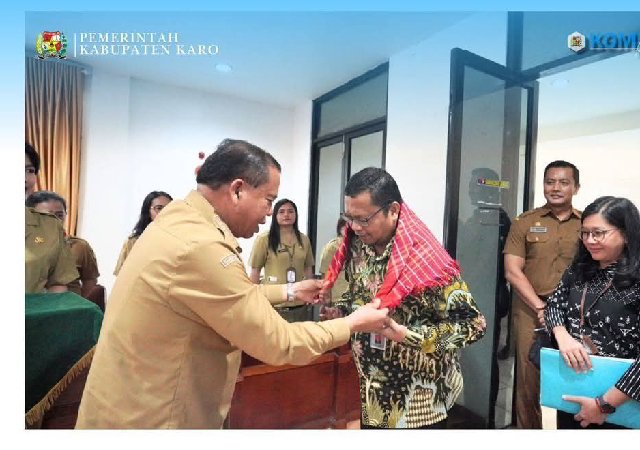 Kabanjahe – Bupati Karo, Brigjen Pol (Purn) Dr. dr. Antonius Ginting, Sp OG., M.Kes., didampingi Sekda Kab.Karo, Gelora Kurnia Putra Ginting, S.STP., MM., menyambut kunjungan kerja Kepala BPK RI perwakilan Provinsi Sumatera Utara, Paula Henry Simatupang, S.E., M.Si., Ak, CA, CFra, CPA (Aust), CSFA, ACPA, GRCP, GRCA, ERMAP., dalam rangka audit kinerja ketahanan pangan Kabupaten Karo Tahun 2025 di Aula Kantor Bupati Karo pada Senin (15/9/2025).