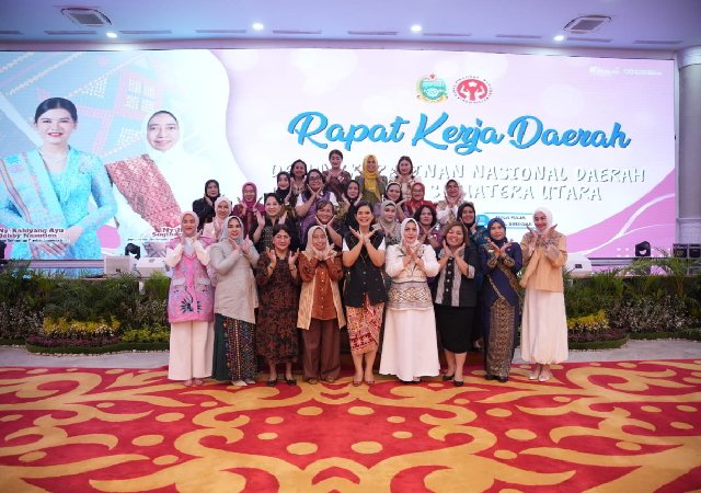 Kisaran — Dewan Kerajinan Nasional Daerah (Dekranasda) Provinsi Sumatera Utara menggelar Rapat Kerja Daerah (Rakerda) di Aula Raja Inal Siregar, Kantor Gubernur Sumut, Senin (24/11/2025). Kegiatan yang dipimpin Ketua Dekranasda Sumut, Ny. Kahiyang Ayu Bobby Nasution, ini dihadiri Ketua Dekranasda Kabupaten/Kota se-Sumut, Wakil Ketua Dekranasda Sumut Titiek Sugiharti, perwakilan OPD, serta pengurus Dekranasda tingkat provinsi dan kabupaten/kota.