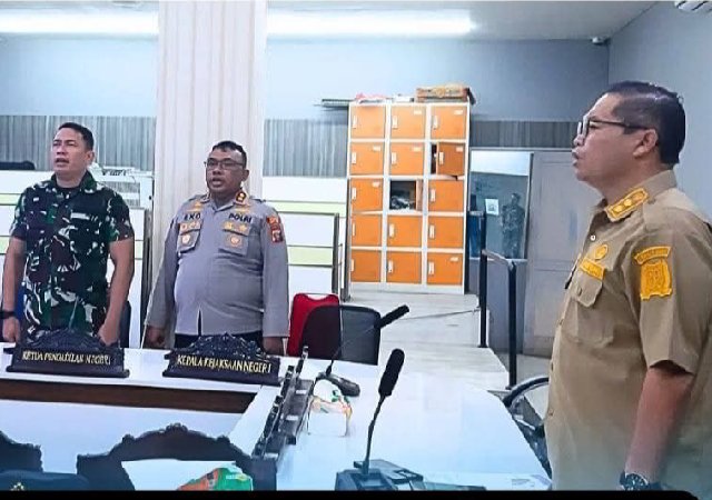 Kabanjahe – Forkopimda Kabupaten Karo bersama Danyon 125 Simbisa Karo, Haris Nur Priatno., Asisten Perekonomian dan Pembangunan, Drs. Dapatkita Sinulingga., OPD terkait, Kepala BPS Kab.Karo, Oliver Bobby Reynold Simarmata., mengikuti Rapat Perkembangan Situasi Terkini yang dirangkaikan dengan Pengendalian Inflasi Tahun 2025 secara daring di ruang rapat KCC Kantor Bupati Karo pada Selasa (2/9/2025)