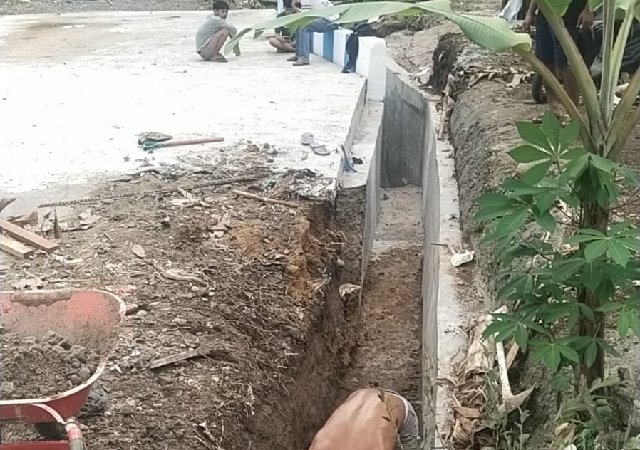 Pantauan awak media dilokasi terlihat pekerja sedang membersihkan runtuhan material sekira 5 meter parit di jembatan tersebut dilokasi runtuhan terlihat parit yang dibangun tidak ada pondasi sehingga sangat rawan tumbang terlebih ketika tergerus air.