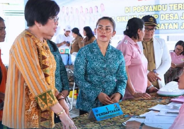 Selama peninjauan, Ny. Roswitha Antonius Ginting tampak berinteraksi langsung dengan warga. Ia turut membantu pemeriksaan balita, menimbang berat dan tinggi badan anak, serta berbincang dengan para ibu dan lansia yang hadir.