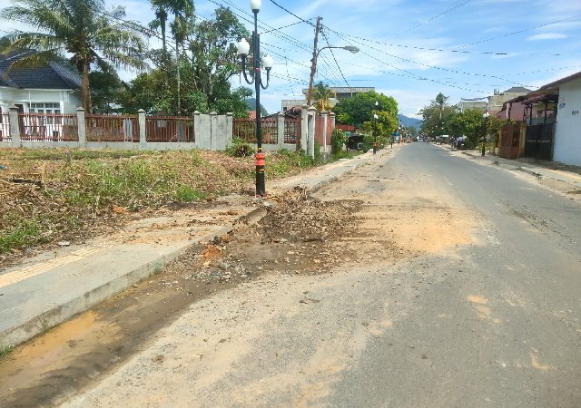 “Lihat itu, pengendara sepeda motor terpaksa harus bermanuver demi menghindari bahaya di tepi galian sedalam pinggang orang dewasa itu,” ungkapnya.