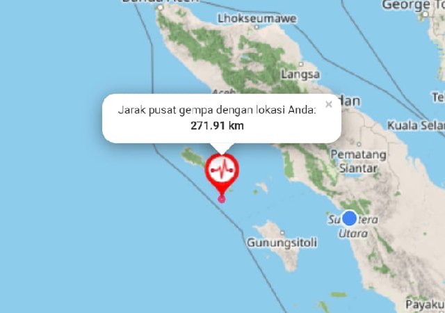 Guncangan gempa berlangsung cukup lama itu tercatat berpusat di Tenggara Pulau Sinabang Aceh.