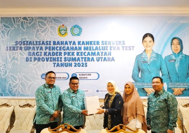 Kisaran, 26 November 2025 — Tim Penggerak PKK Provinsi Sumatera Utara melaksanakan kegiatan sosialisasi bertema “Bahaya Kanker Serviks dan Upaya Pencegahan Melalui IVA Test” bagi kader PKK tingkat kecamatan se-Sumatera Utara. Kegiatan yang digelar di Ruang Hijau Rumah Dinas Bupati Asahan ini bertujuan memperkuat edukasi serta meningkatkan kapasitas kader dalam mendukung deteksi dini kanker serviks di wilayah masing-masing.