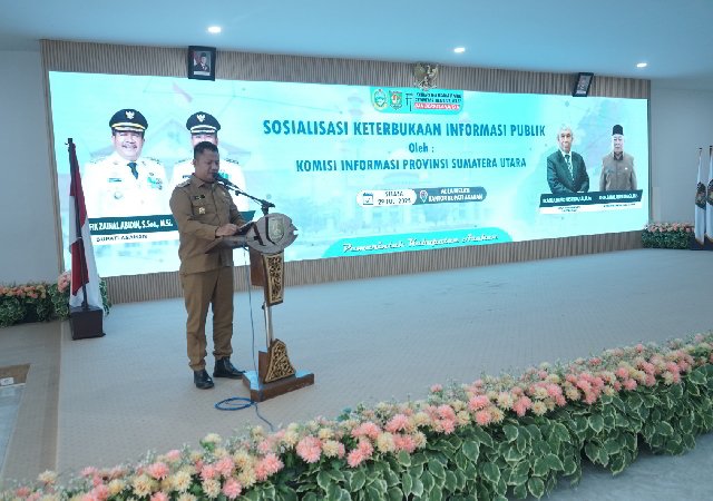 Wakil Bupati, Asahan Rianto, SH., M.A.P Membuka sosialisasi keterbukaan informasi publik tingkat Kabupaten Asahan di Aula Melati Kantor Bupati Asahan. Selasa (29/07/2025).