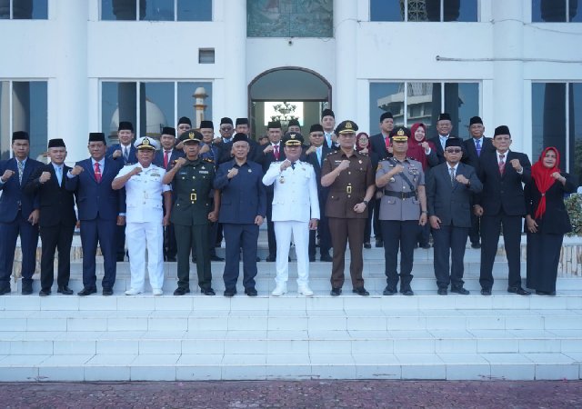 Sejumlah pejabat turut hadir dalam upacara tersebut, di antaranya Wakapolres Asahan Selamat Riayadi, S.H., S.I.K., M.H., perwakilan Dandim 0208 Asahan, perwakilan Kejaksaan Negeri Asahan yang diwakili Kasi Datun Dr. RM Yusuf Trisnajaya, S.H., M.H., unsur TNI AL, serta Ketua DPRD Kabupaten Asahan H. Efi Irwansyah Pane, M.Kn. Turut hadir pula para asisten, staf ahli, pimpinan OPD, dan undangan lainnya.